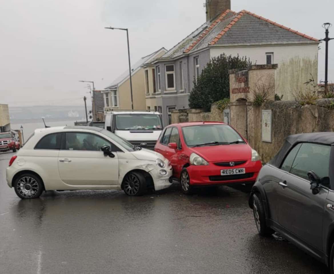 Kathryn Kinsley, of St Peters Road, lost control of her car on the morning of Valentine’s Day (February 14) while driving down Priory Road in Milford Haven. Her vehicle struck two parked cars before coming to a stop.