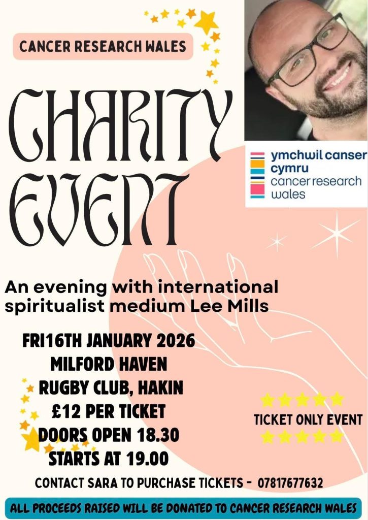 A CHARITY evening with an international spiritualist medium is set to take place in Milford Haven later this month, with all proceeds going to Cancer Research Wales.
