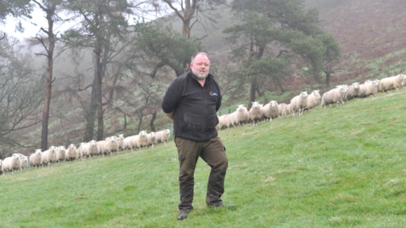 Shepherd Alun Jones with Welsh Mountain ewes at Llysfasi.