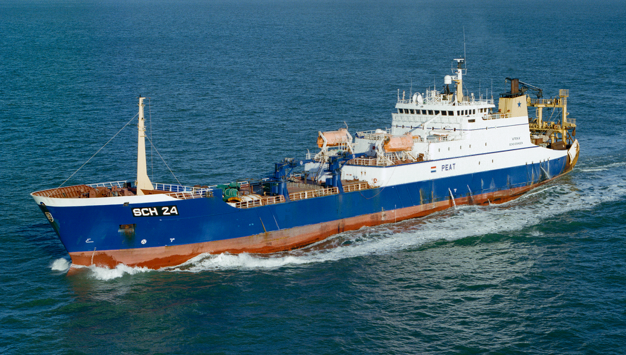 The ‘Willem van der Zwan’ at 142m is one of the largest fishing vessels of the Dutch fleet is working alongside three other EU registered factory ships including the ‘Afrika’ and the ‘Carolien’.
