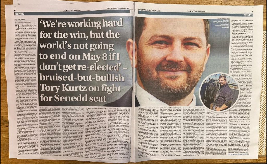SAMUEL KURTZ has said he remains determined to retain his Senedd seat despite growing political uncertainty, following a prominent double-page interview published ahead of the Welsh Parliament election in May.