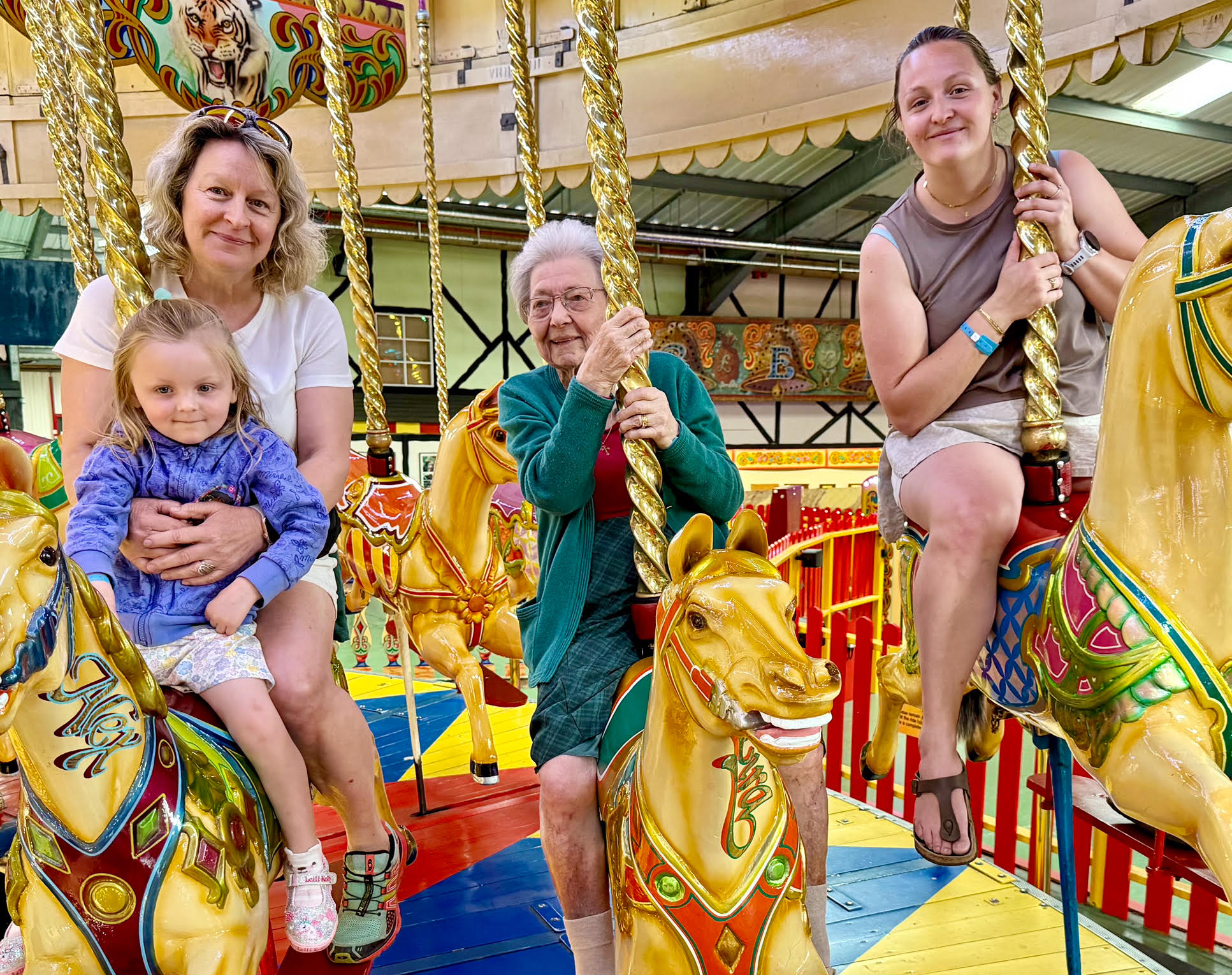 “I wouldn’t miss it for the world,” said Phyllis. “Spending this week with my family, especially my great-granddaughters Felicity, 4, and Verity, 2, is the highlight of my year. And I do love those rides!”