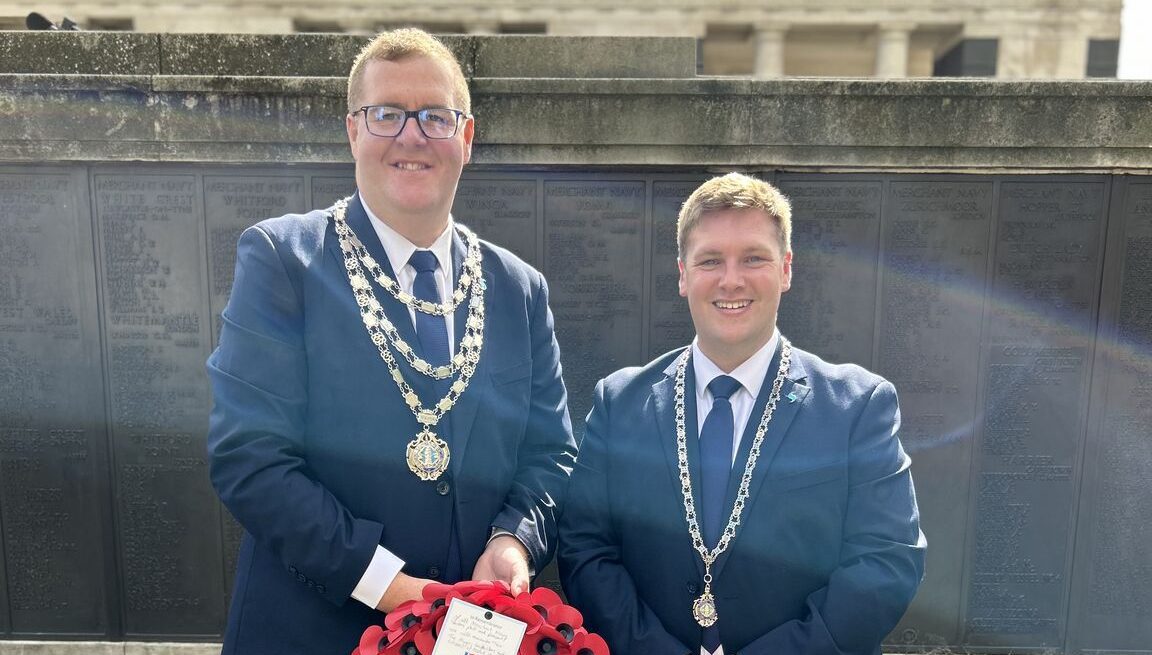 (Pictured top: Cllr William Elliott and his Consort – Mr Lloyd Jones – on Memorial Sunday)