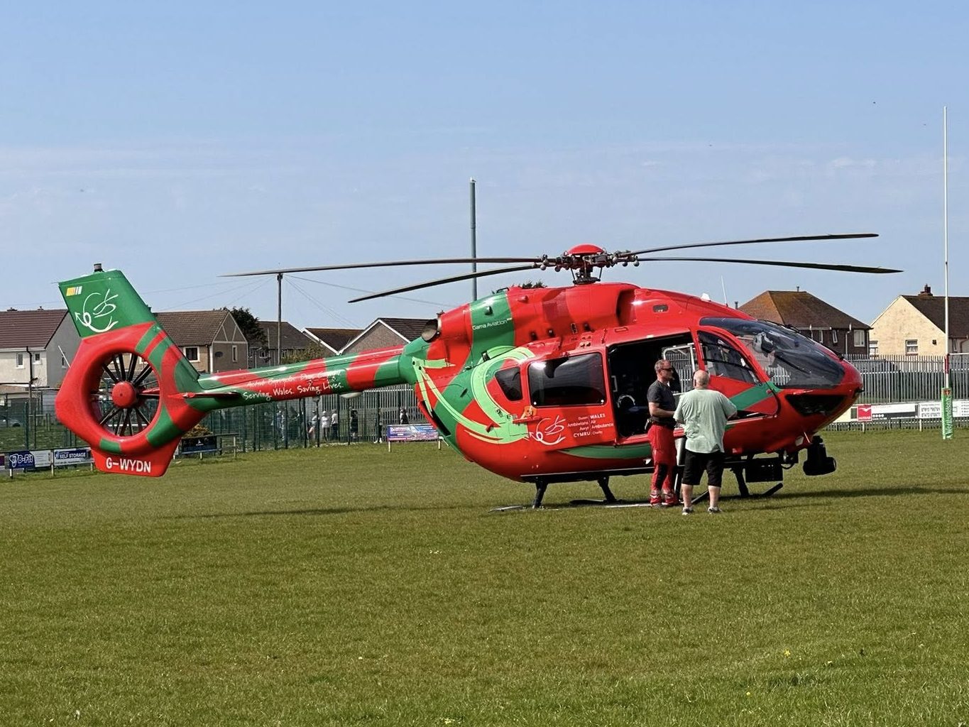 The air ambulance landed at Milford Haven Rugby Club, and its crew were transported to the jetty to assist with the emergency.