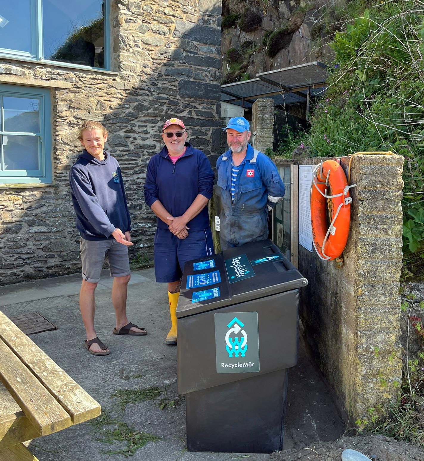 Lloyd Nev Kev at Abercastle Harbour with Recycle Mor Bin