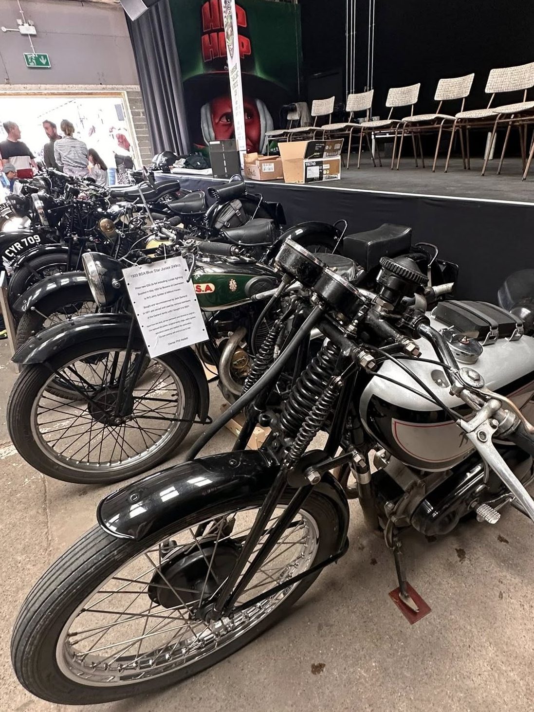 One of the standout bikes was a 1922 Velocette E2, believed to be the sixth-oldest Velo in the world, featuring the oldest known example of the Velocette tank badge, applied 103 years ago. This 220cc two-stroke machine was the first of its kind to be fitted with both a clutch and kickstart. Exported to France in 1922, it passed through the hands of famed French trials rider M. A. Burger.