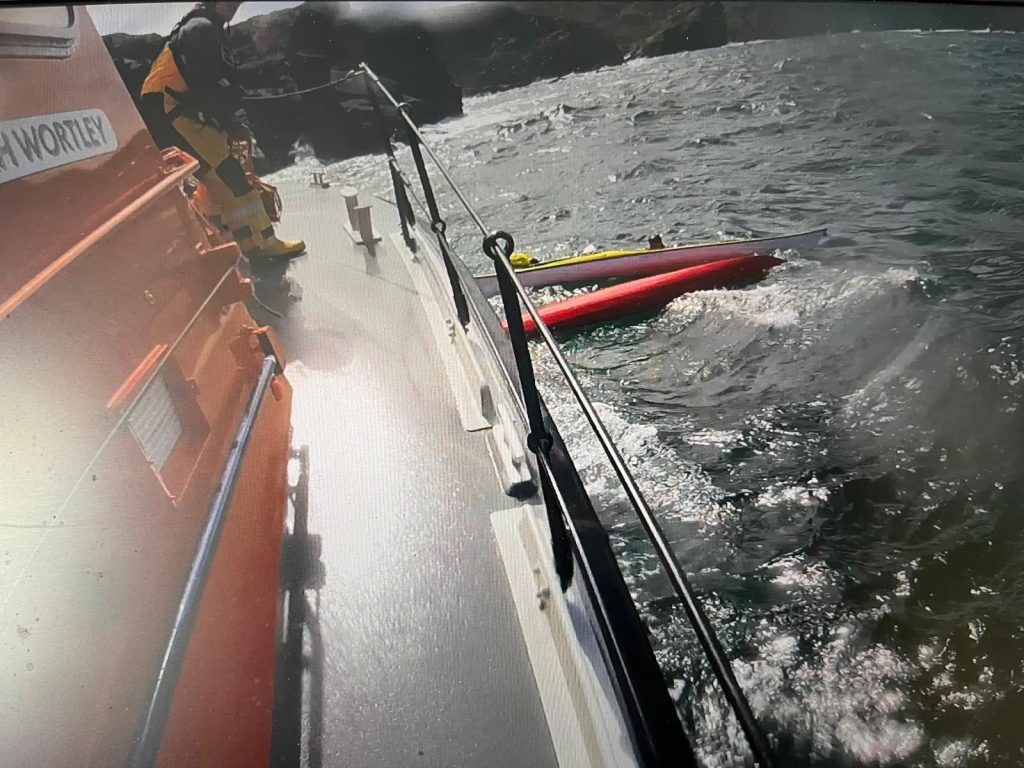 AT 12:28pm on Saturday (May 3), St Davids all-weather lifeboat Norah Wortley launched following reports of four kayakers in distress west of Abereiddi Bay.