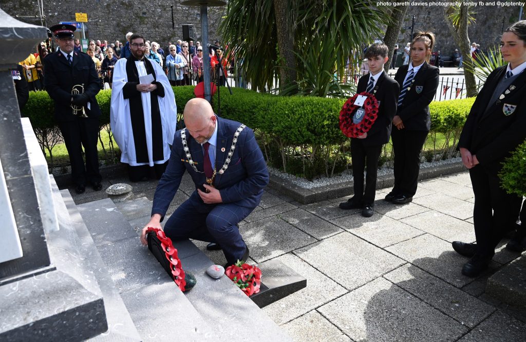 Among those laying wreaths were representatives from The Royal British Legion Tenby branch, Pembrokeshire County Council, Dyfed-Powys Police, the armed forces, local schools, and community groups. Pupils from Greenhill School also took part, laying wreaths on behalf of the younger generation.