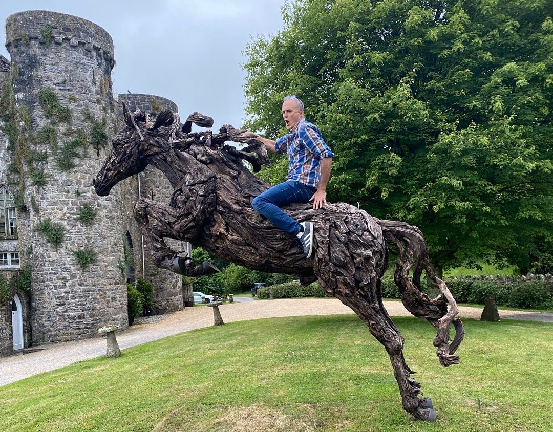 The dramatic black stallion, titled Ascent, had been on exhibition at the historic Upton Castle Gardens, captivating visitors with its powerful form and dynamic pose. Created entirely from reclaimed driftwood, the horse rears on its hind legs as if leaping into the air — an impressive testament to Doran-Webb’s craftsmanship and imagination.