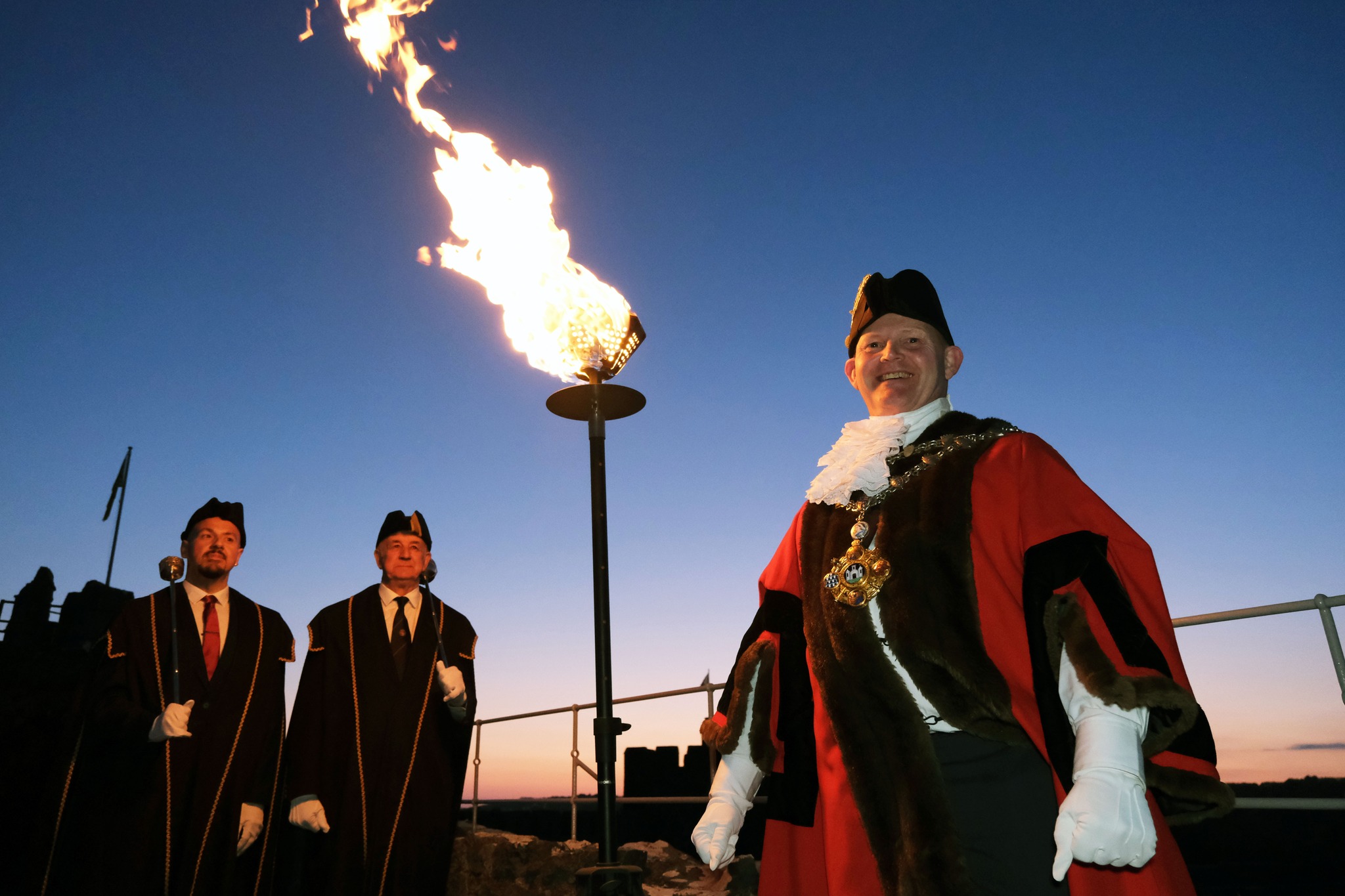 A COMMEMORATIVE beacon was lit at Pembroke Castle on Wednesday evening (May 8) as the town joined nationwide celebrations marking the 80th anniversary of Victory in Europe Day.