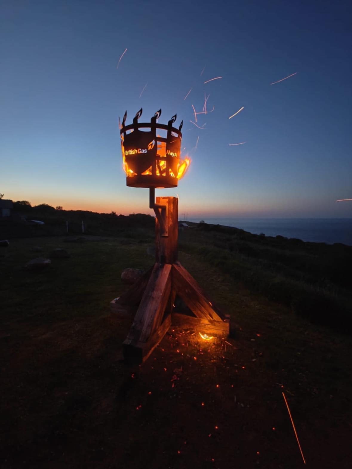 Organised with the support of the Royal British Legion’s Fishguard and Goodwick Branch, the ceremony featured the branch standard proudly displayed beside the flaming beacon, which bore the inscription “British Gas” and “Prydain” (Wales/Britain in Welsh).