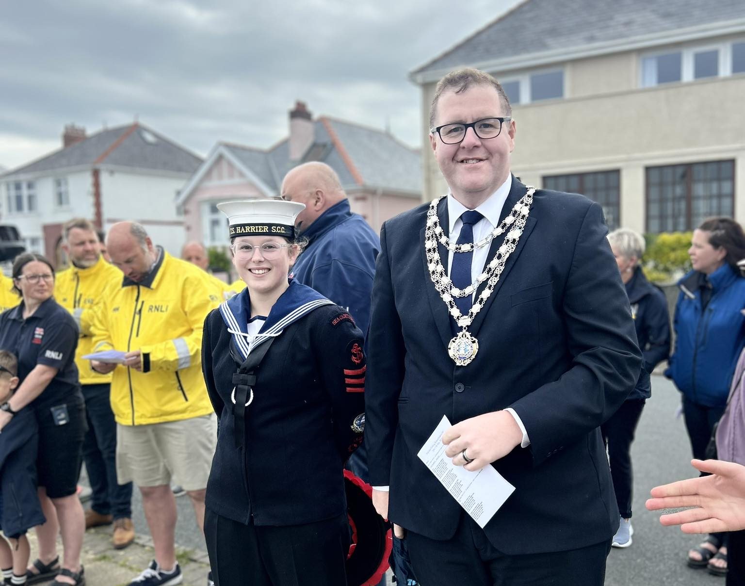 Milford Haven Mayor, Cllr William Elliott, attended the service alongside Leading Cadet Sophie, one of this year’s Mayor’s Cadets. They were joined by the Deputy First Minister of Wales, Huw Irranca-Davies, who paid tribute to the bravery and sacrifice of those who risk – and have lost – their lives at sea.