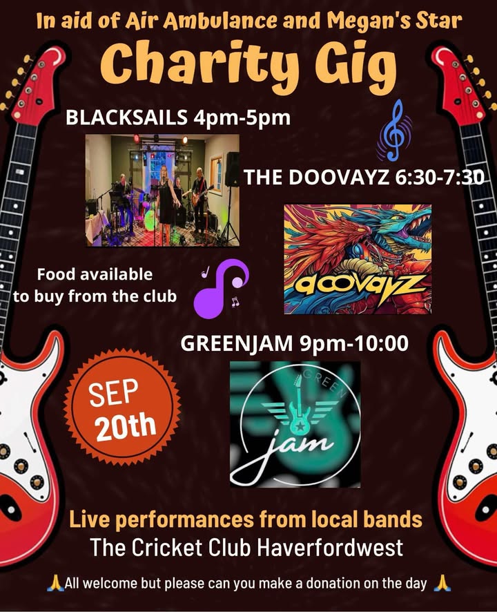 A NIGHT of live music is set to hit all the right notes in Haverfordwest this September, with a charity gig in support of the Wales Air Ambulance and Megan’s Star.