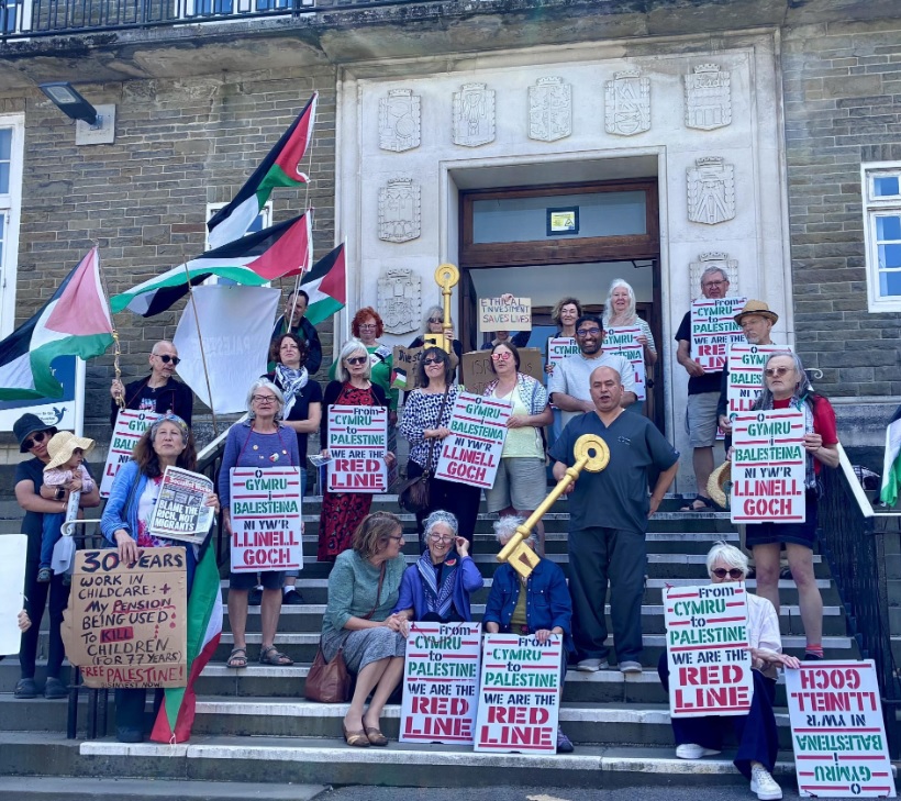 CAMPAIGNERS from across west Wales will gather outside County Hall in Carmarthen on Monday, 23 June 2025, from 1:00pm to 2:00pm, calling on the Dyfed Pension Fund to divest from companies they say are complicit in human rights abuses against Palestinians.