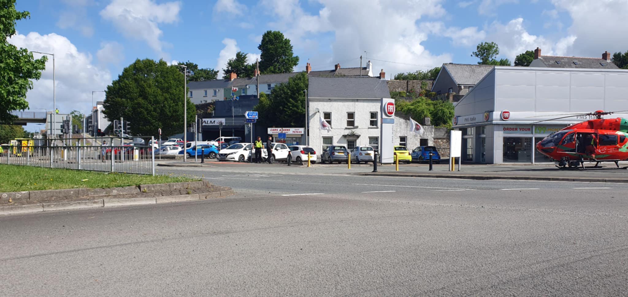 The air ambulance landed on the former forecourt of Greens Motors, prompting police to close the road between Salutation Square and the Morrisons roundabout.