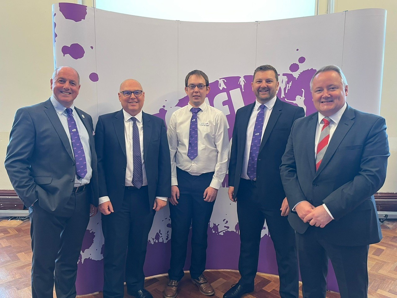 Steve Hughson (Wales YFC), Paul Davies MS, Dewi Davies (Wales YFC), Samuel Kurtz MS, and Darren Millar MS at the YFC showcase event.