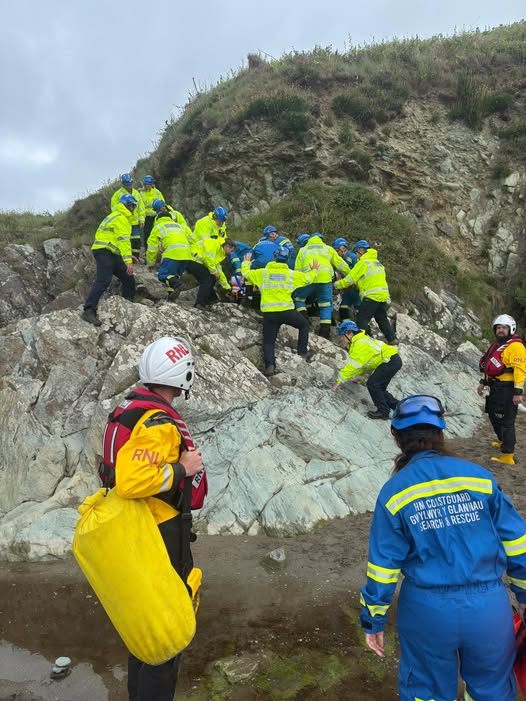 The volunteer lifeboat crew launched at 5:04pm and arrived swiftly on scene, where they went ashore to assist with casualty care. They worked alongside HM Coastguard teams from St Davids and Fishguard, including the specialist cliff rescue unit.