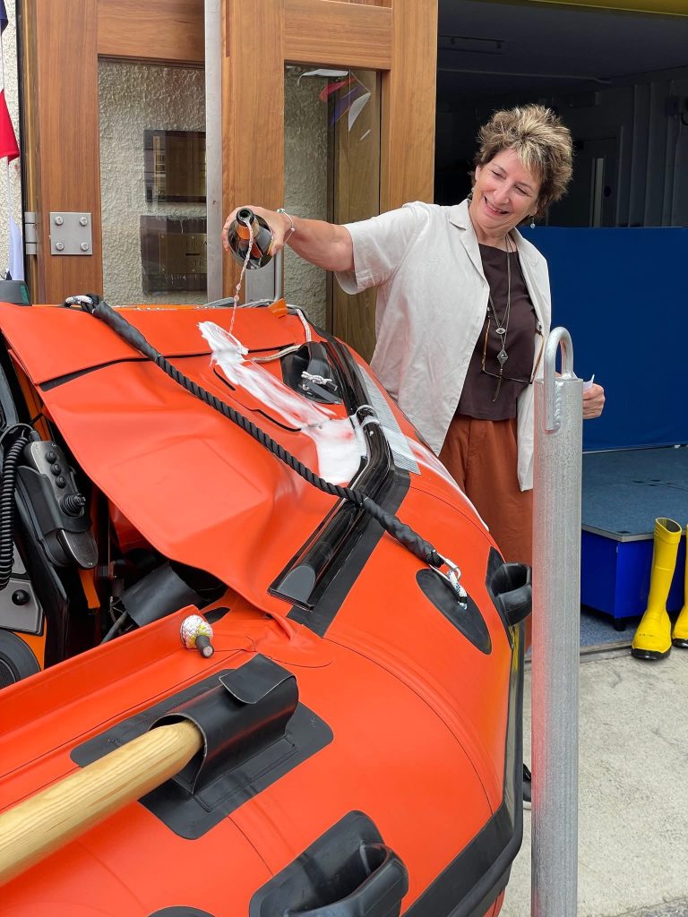 The new vessel was formally handed over by Jill Legane, a trustee of the Laurence Misener Charitable Trust, which kindly funded the boat. Although unable to attend in person, a message from Captain George Swaine, another trustee and namesake of the vessel, was read out during the ceremony.