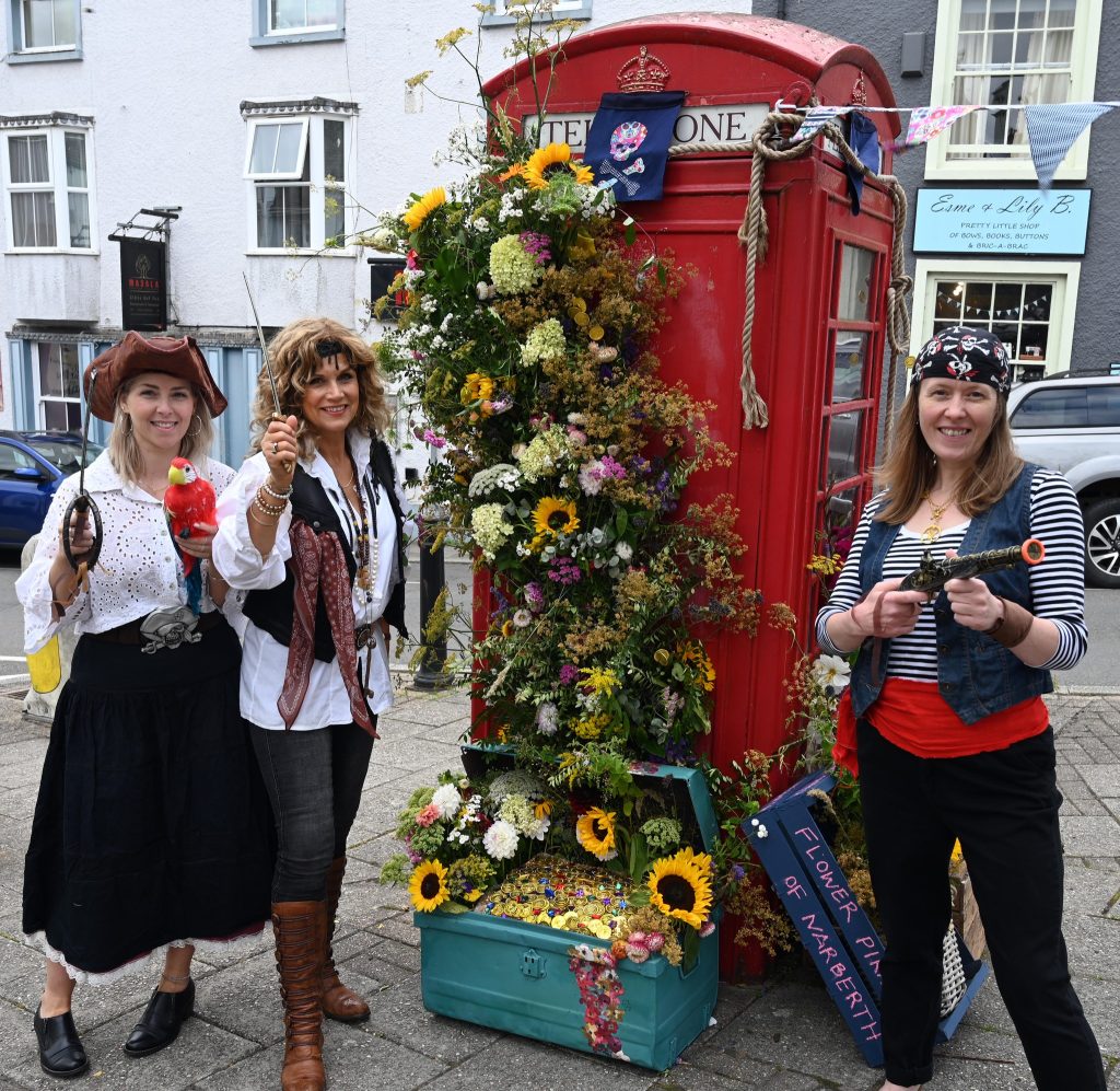 Another crowd favourite was the pirate ship float—complete with a full crew of swashbucklers, mermaids and even a shark on the side. Across the town, pirate-themed displays popped up, including the Flower Pirates of Narberth transforming the town’s red phone box with blooms, bunting and a chest full of glittering treasure.
