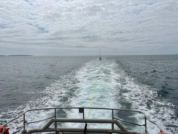 RNLI crews assessed the situation and, with the yacht at risk of drifting into rocks around the environmentally protected island, a decision was made to take it under tow.