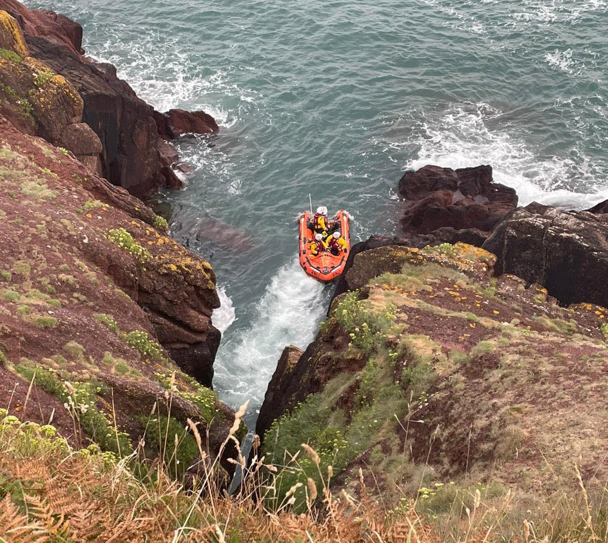 With both lifeboats on scene, the all-weather lifeboat searched offshore from Priest’s Nose around to Manorbier, while the inshore lifeboat worked closer to shore, checking bays, rocks and caves.