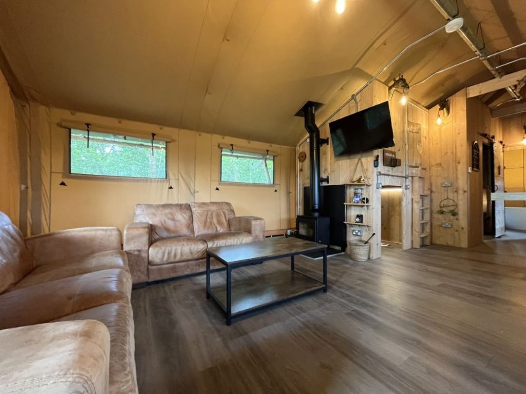 Sleeping up to six, the pod offers a double bedroom, twin bedroom, and a cabin bed. It features a private bathroom with a freestanding egg‑shaped bath and separate shower, as well as a fully‑fitted kitchen with washer dryer, dishwasher, oven and hob. A log burner adds comfort for cooler evenings, while three rooms are fitted with smart TVs.