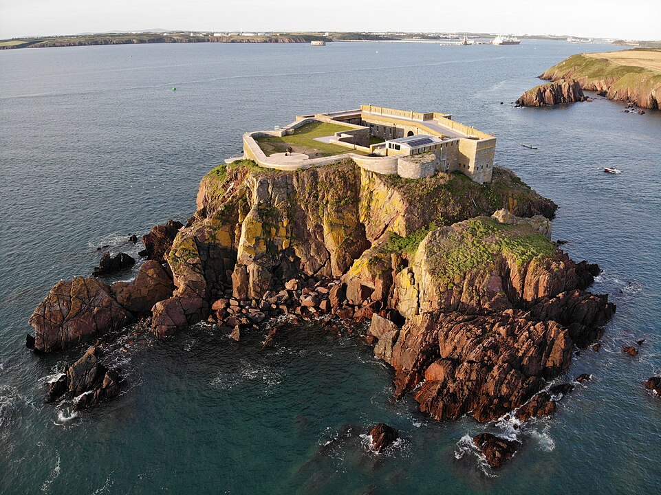 The Grade II* listed stronghold sits half a mile off the golden sands of West Angle Bay, commanding dramatic 360-degree views over the Milford Haven Waterway. Steeped in military history, it was built in the 1850s by more than 1,000 workers to guard against a feared French invasion during the reign of Napoleon III.