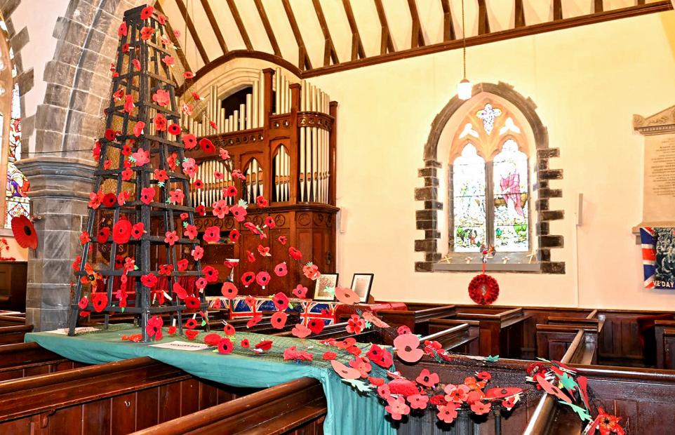 A striking poppy display has been created by volunteers, led by Dorothy Mason from the local branch of the Royal British Legion. The poppy, a long-standing symbol of remembrance, serves as a fitting tribute to those who served and sacrificed during the war.