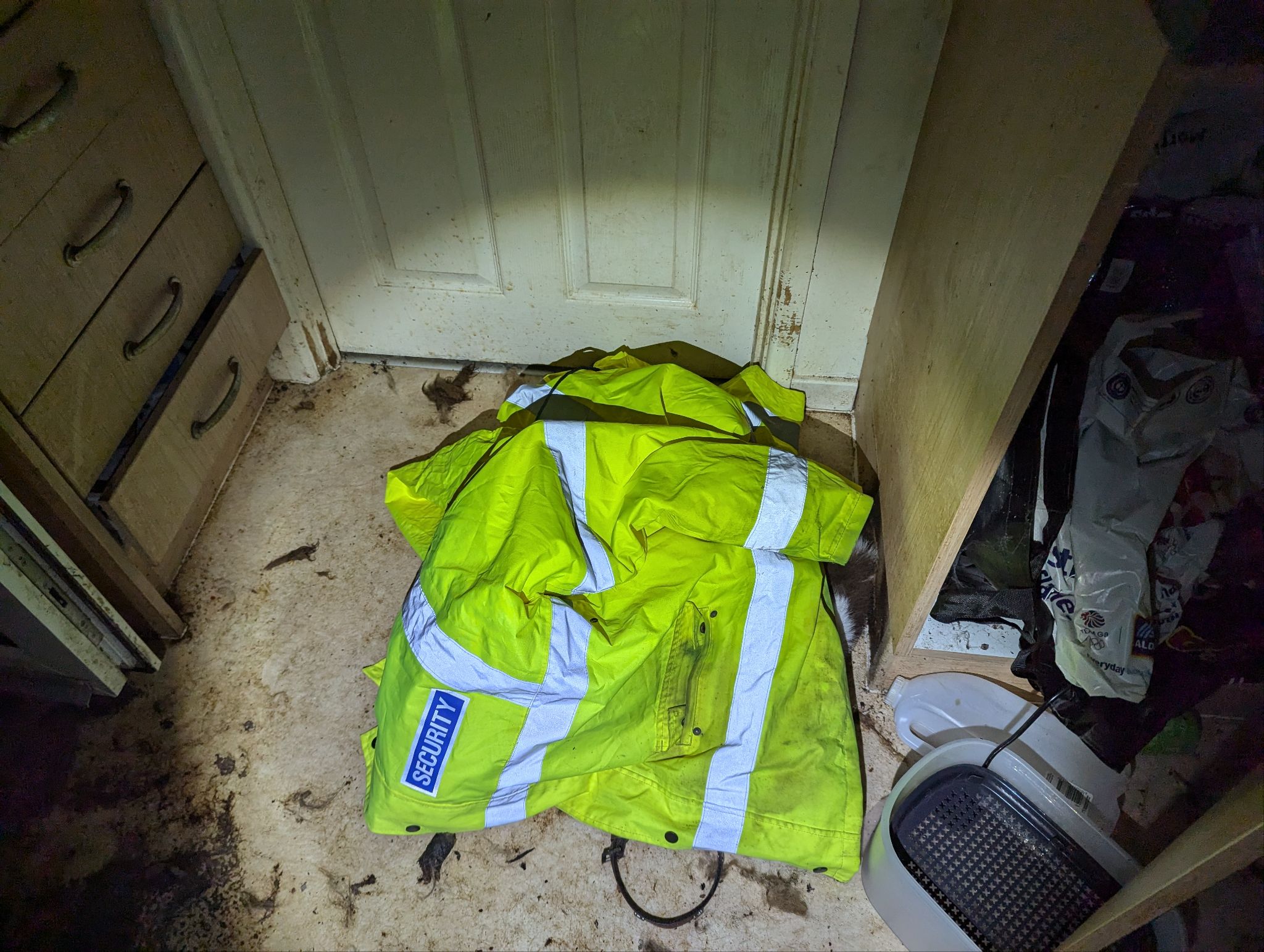 The body of the dog, named Areo, was discovered by South Wales Police and the RSPCA on 5 December last year. Officers found him hidden under a hi-vis jacket in the kitchen.