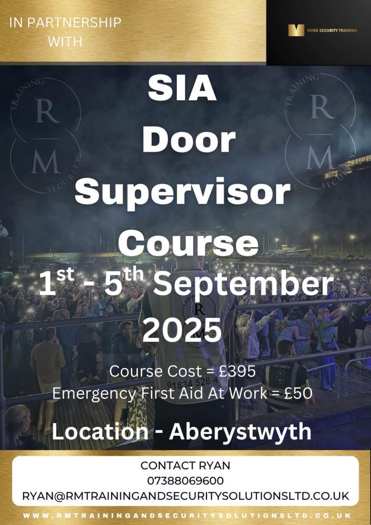 ABERYSTWYTH is set to host a premier SIA Door Supervisor Course from 1–5 September 2025, offering participants the chance to gain the skills and qualifications needed to work in one of the UK’s most in-demand industries.