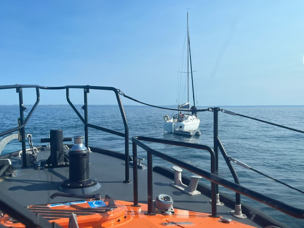 Huw Williams, one of New Quay RNLI’s volunteer coxswains, said: “After locating the vessel, we conducted welfare checks on the two persons on board. Assessing the situation, we concluded that towing the vessel back to New Quay was the safest course of action.