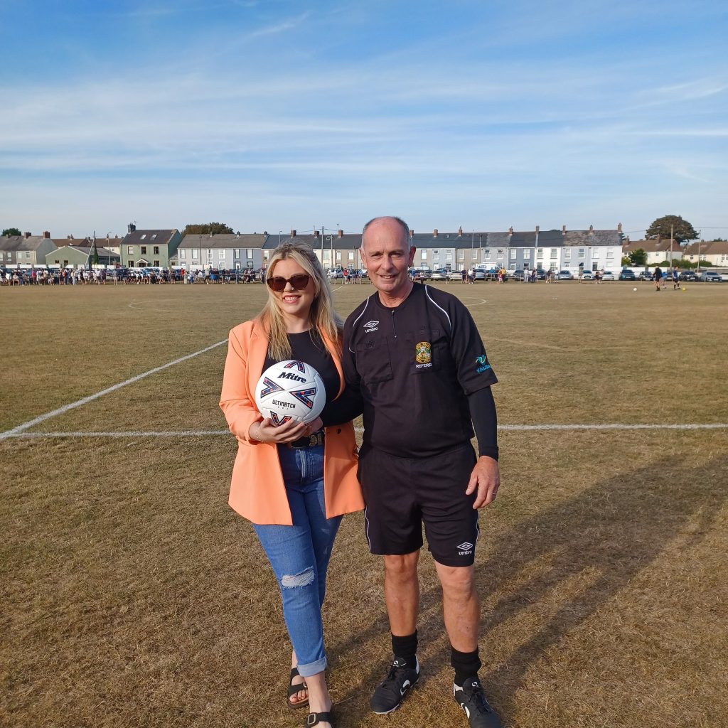 The match was made possible thanks to support from across Pembrokeshire football, including Milford United for hosting, and Pembrokeshire Referees’ Society for officiating. Ellie Boswell of Nautico’s Restaurant kindly sponsored the match ball, pictured alongside her father Roy Boswell.