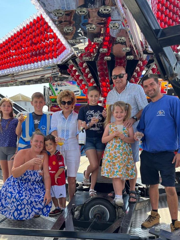 Edward and Ellen Danter, members of one of Britain’s best-known showmen families, gathered with three generations of the clan to mark the occasion in style. A bottle of bubbly, gifted earlier in the season by Darren and Michelle Matthews, was saved especially for the big day.