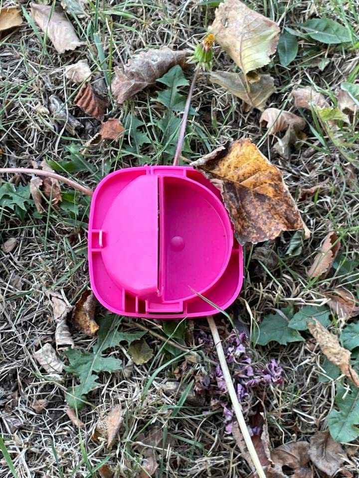 The pink collection tin, used to raise funds for the foundation’s mental health support work, was discovered discarded between the Three Crowns and the Church of the Holy Spirit. Coins were scattered across the ground nearby.