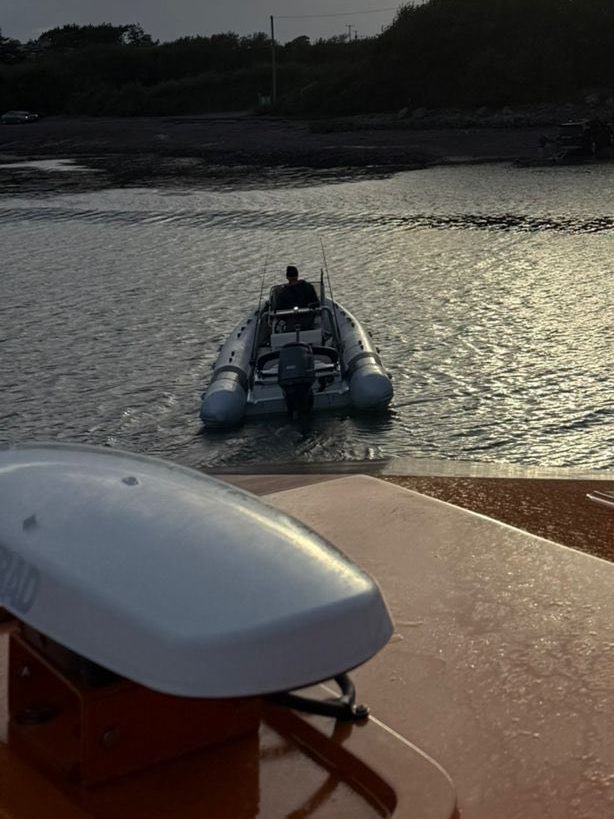 Angle lifeboat was only a mile away and arrived within minutes. The vessel, suffering intermittent engine issues, was able to make slow progress, so the Mayday was downgraded. The lifeboat escorted the rhib back to East Angle Bay, where it was recovered onto its trailer. The crew stood down at 7:30pm and resumed their exercise.