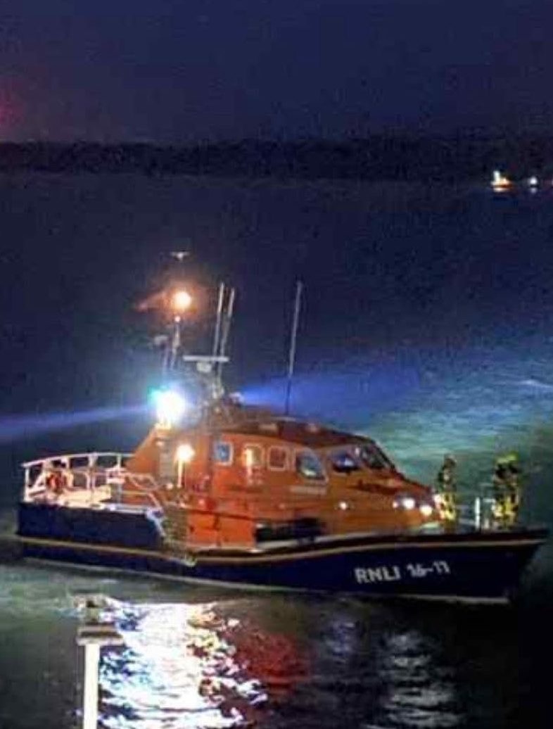 While on exercise at 7:04pm, the crew heard a Mayday from a rigid-hulled inflatable boat (RHIB) with two people on board drifting near South Hook LNG terminal.