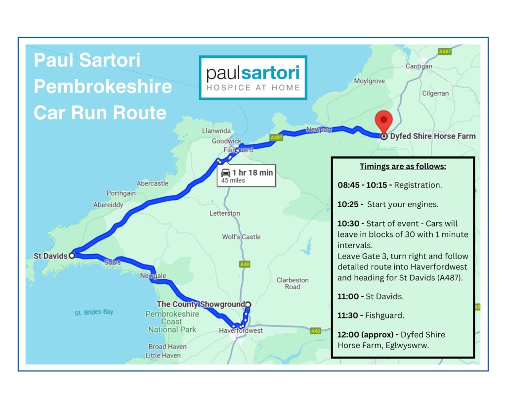 The run will conclude at the Dyfed Shire Horse Farm in Eglwyswrw, offering a unique destination for drivers and spectators alike.
