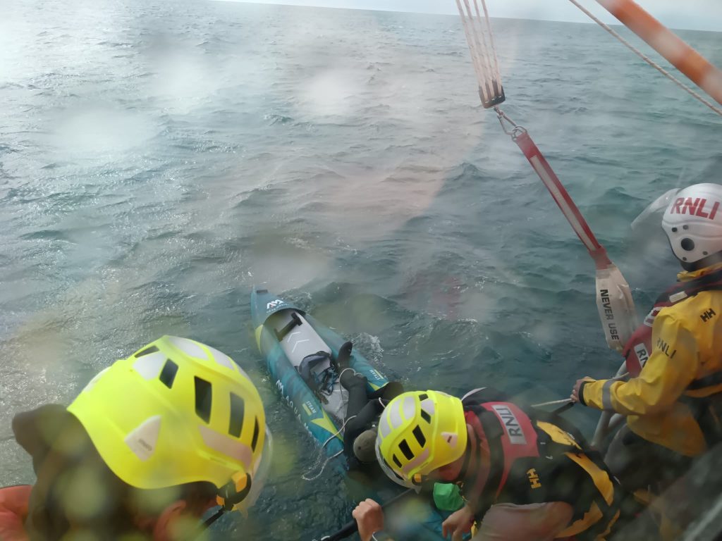 Coxswain Will Chant said: “The kayaker had been safe while close to shore but was caught out by the sheer force of the offshore winds once he ventured beyond the headland. This was a timely launch and excellent teamwork across agencies. Without such a rapid response, this rescue could have become far more dangerous in the conditions.”