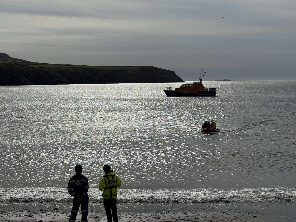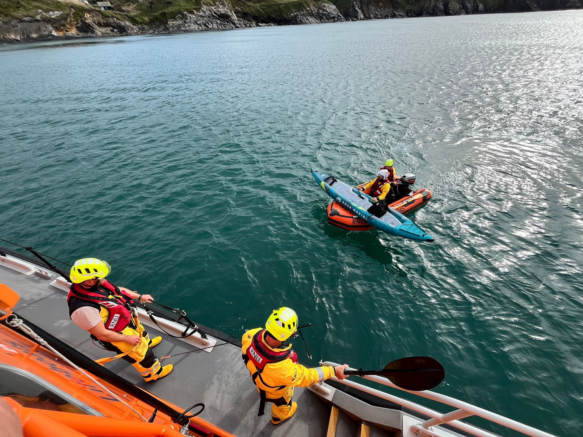 In a seamless joint effort, the lifeboat’s daughter craft was launched to transfer the kayaker back to Abereiddy beach, where the waiting coastguard team ensured he was safely brought ashore.