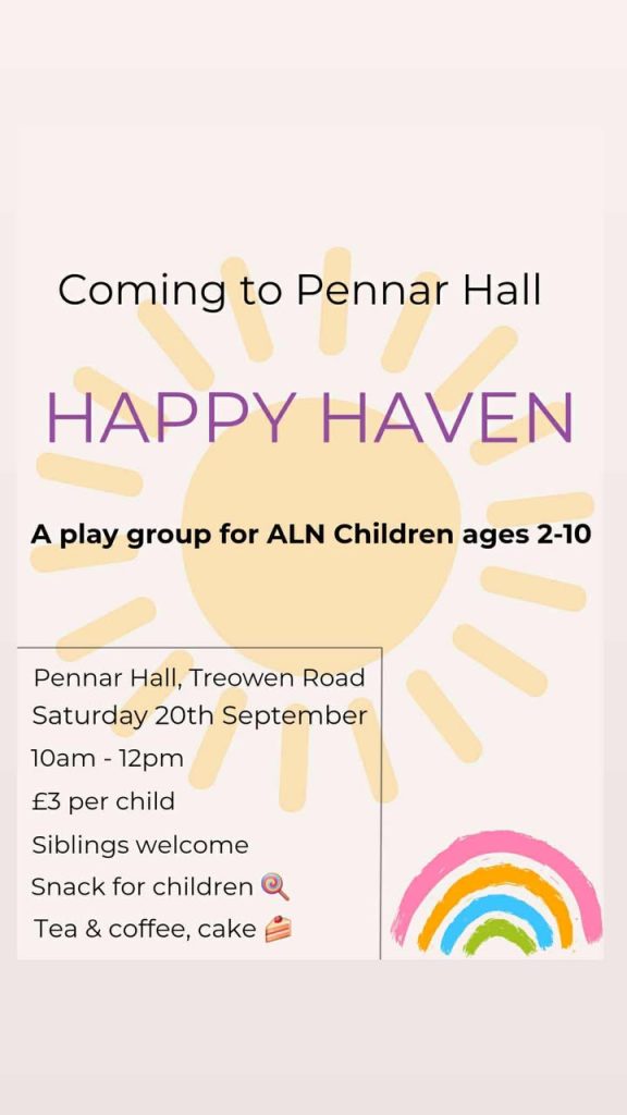 The playgroup will welcome children aged two to ten with ALN, along with their siblings. Sessions will run at Pennar Hall, Treowen Road, on Saturday 20th September from 10:00am until 12:00pm. Entry costs £3 per child and includes a snack, while tea, coffee and cake will be available for parents.