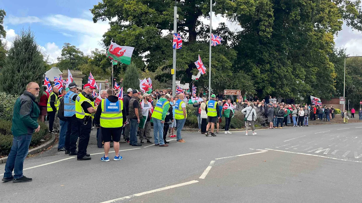 West Wales protesters join counter-demonstration in Newtown