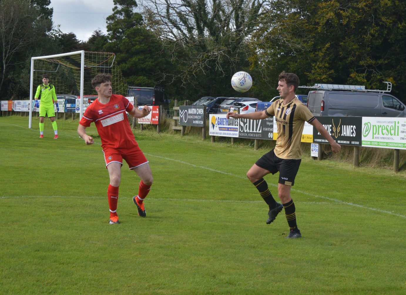 Five minutes into the second half George struck again, seizing on a loose ball inside the area to put Crymych in front for the first time. From then on, the league leaders controlled the game with composure, going close to extending their lead when Ross McDonald’s effort rattled the crossbar.