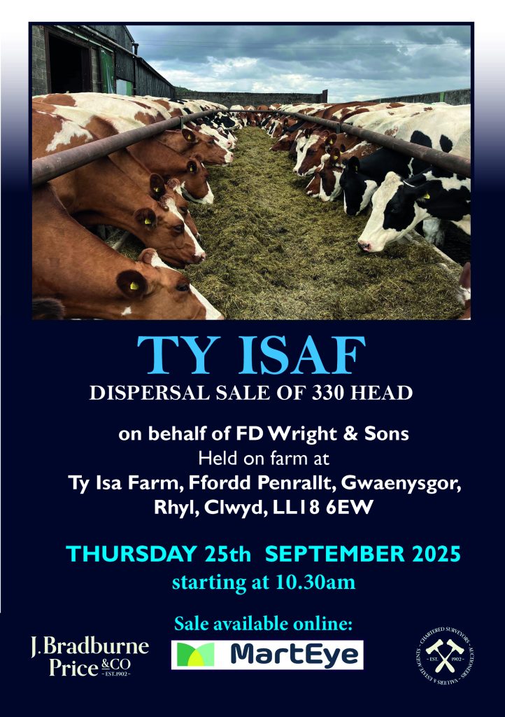 A LANDMARK dispersal sale of the Wright family’s dairy herd will take place at Ty Isaf Farm, Gwaenysgor, near Rhyl, later this month.