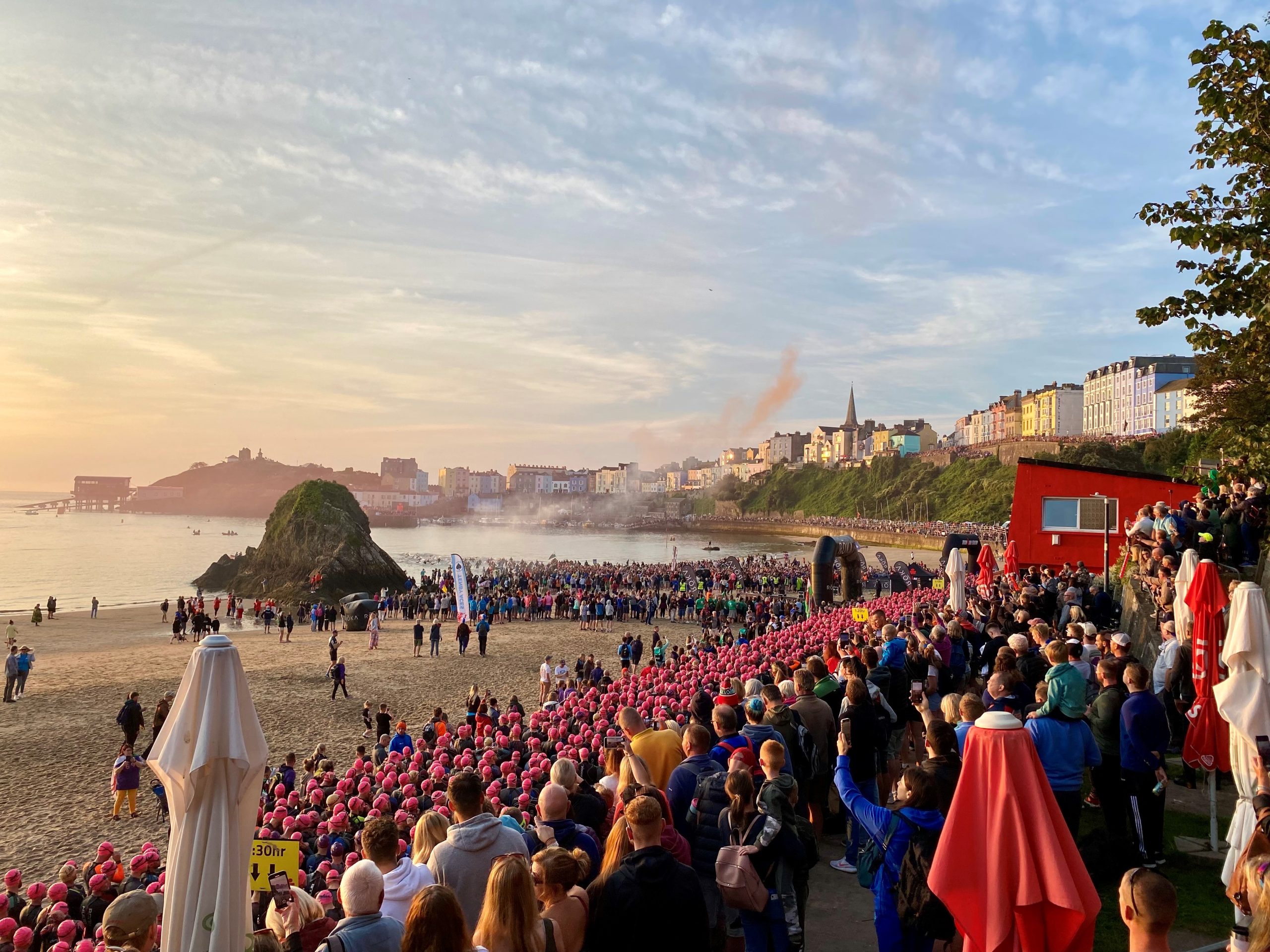 Competitors will tackle a gruelling course: a 2.3-mile swim from Tenby’s North Beach at 7:25am, followed by a 112-mile bike ride and a 26.2-mile marathon run.