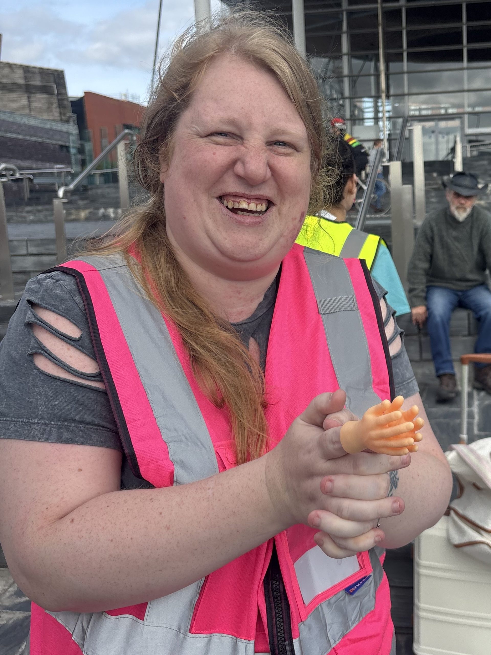 A FALTERING anti-Trump protest outside the Senedd was unexpectedly revived on Friday (Sept 19) by the arrival of a man dressed as Santa Claus and another in a dinosaur costume.