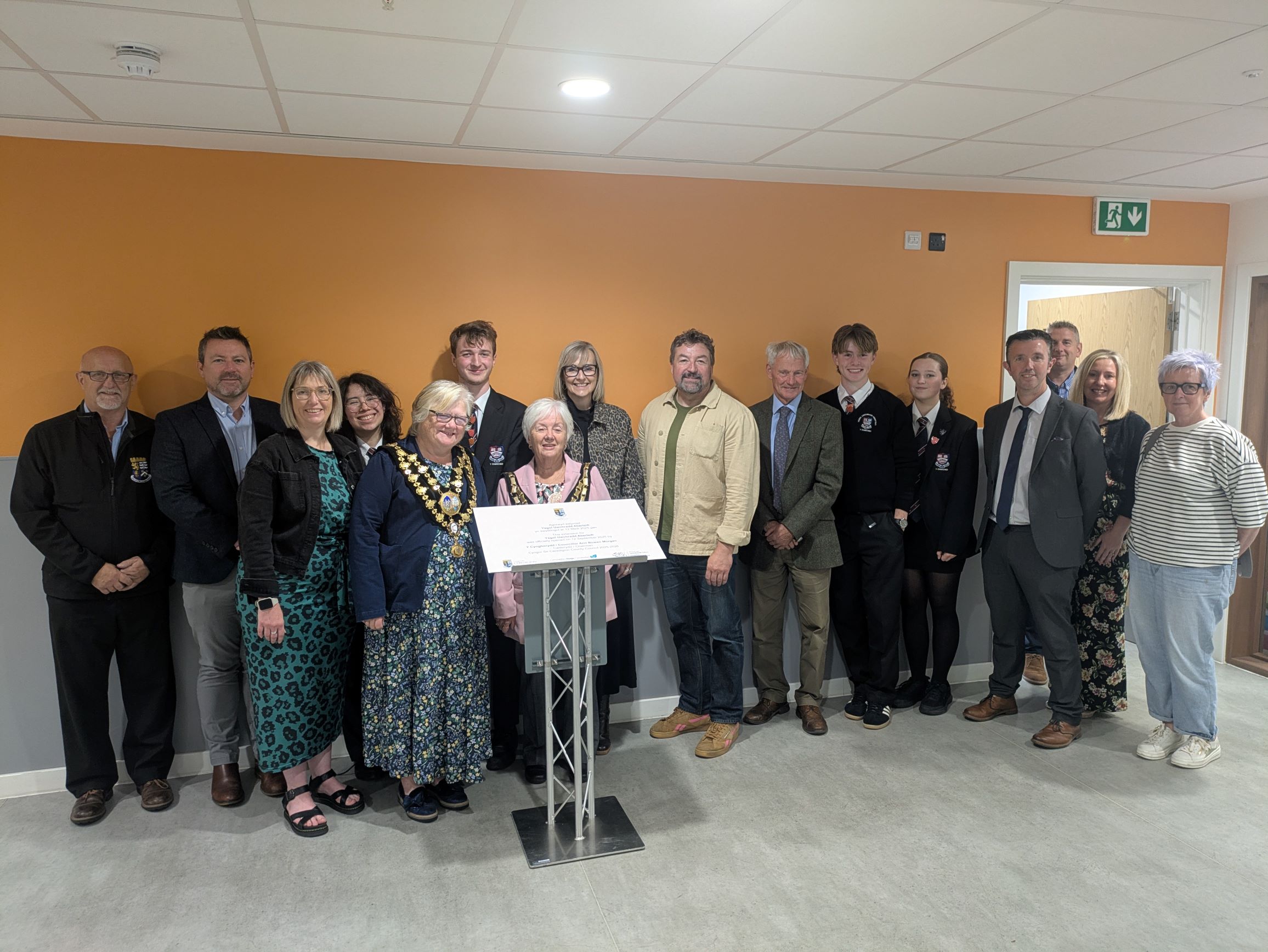 Staff, councillors and pupils at Ysgol Uwchradd Aberteifi during the official opening on 12 September (Pic: Ceredigion County Council).