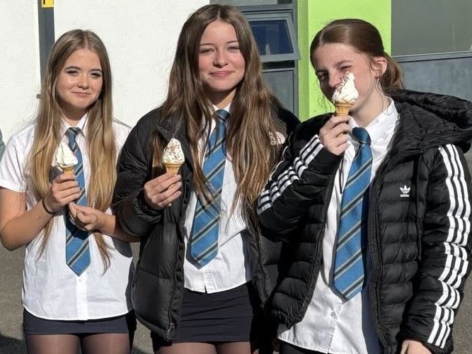 On Thursday (Sept 25), Martin McGeown, who runs the well-known ice cream business, joined staff and pupils at the Haverfordwest school to serve up 99s in support of new playground equipment.