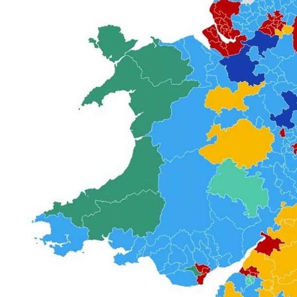 Most of the 24 lost seats in Wales would fall to Reform, in line with the UK-wide trend. The shift would redraw the political map of the nation, leaving vast swathes of Wales shaded in Reform blue.