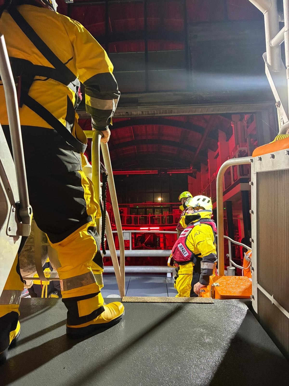 Tenby’s inshore lifeboat initially launched alongside the all-weather boat, but was quickly stood down due to heavy seas and breaking waves. The larger lifeboat pressed on, negotiating fast-changing sand banks and tidal depths across the Carmarthen Bar.