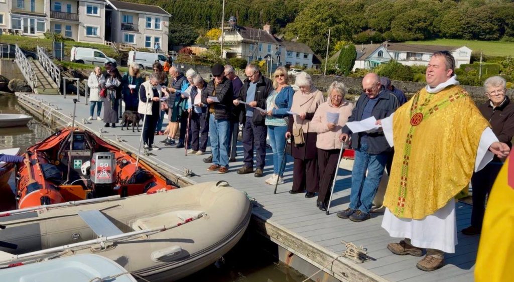 Rev Wyn Maskell leads prayers of safety with support from St Dogmaels Rowing Club